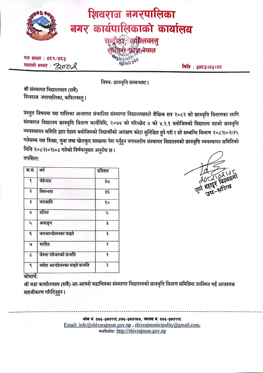 निशुल्क छात्रवृती वितरण सम्बन्धमा।