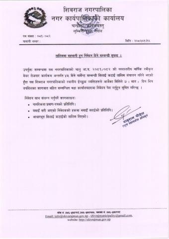 सरसफार्इ शुल्क संकलन र सरसफार्इ कार्य गर्ने सम्बन्धी शिलबन्दी दरभाउ पत्र आव्हानको सूचना
