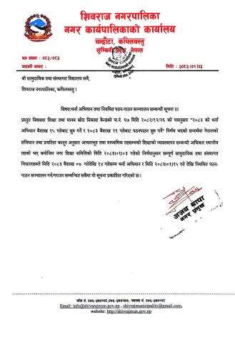 स्वयसेवक शिक्षक पदकाे परीक्षा मिति संशाेधन सम्बन्धि सूचना ।
