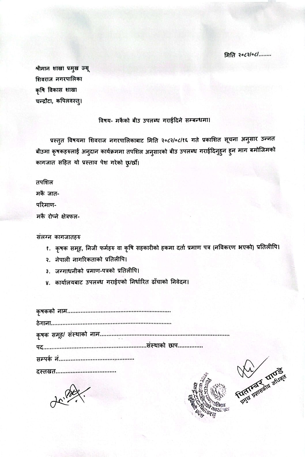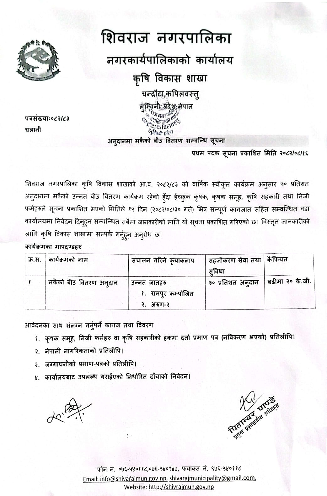 शिवराज नगरपालिका कृषि विकास शाखाकाे सूचना ! सूचना !! सूचना !!!