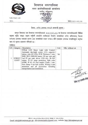 शिवराज नगरपालिका कृषि विकास शाखाकाे सूचना ! सूचना !! सूचना !!!