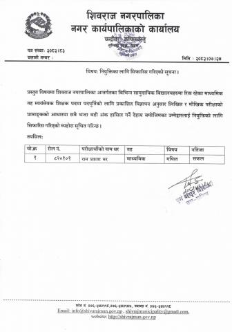 शिवराज नगरपािलकाले निम्न बमाेजिम स्वयंसेवक शिक्षकको बिज्ञापन प्रकाशन गरेकाे छ ।