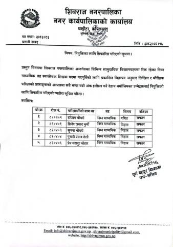 नियुक्तिका लागि सिफारिस गरिएको सूचना।