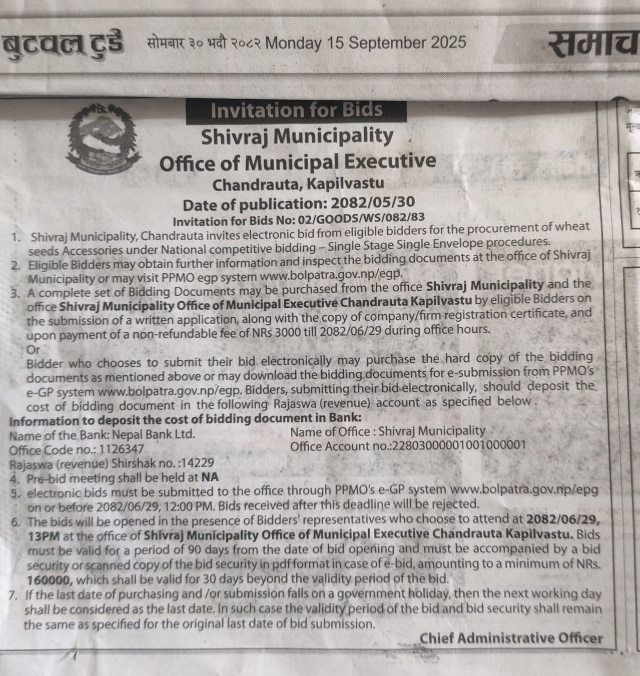 दोश्रो पटक प्रकाशित शिलबन्दी बोलपत्र/दरभाउ पत्र आव्हानको सुचना ।