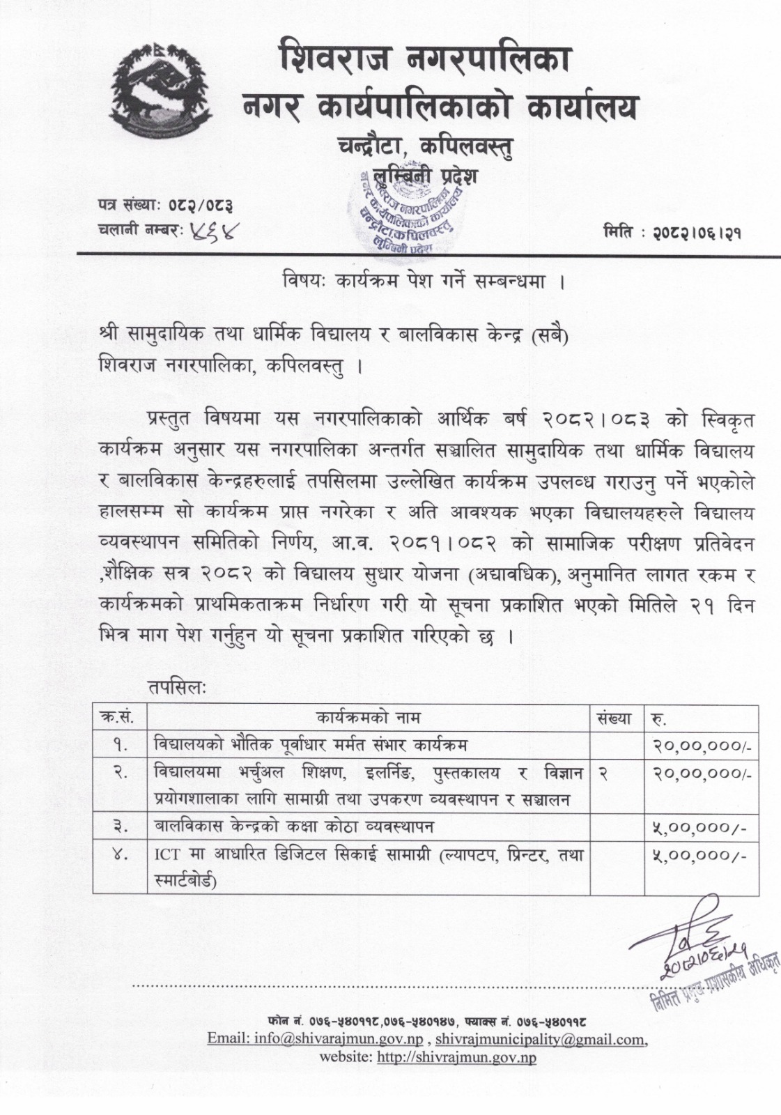 शिवराज नगरपालिका शिक्षा योजना २०८२