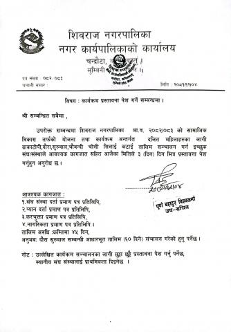 कार्यक्रम सञ्चालनका लागि प्रस्ताव आहवान सम्बन्धमा।