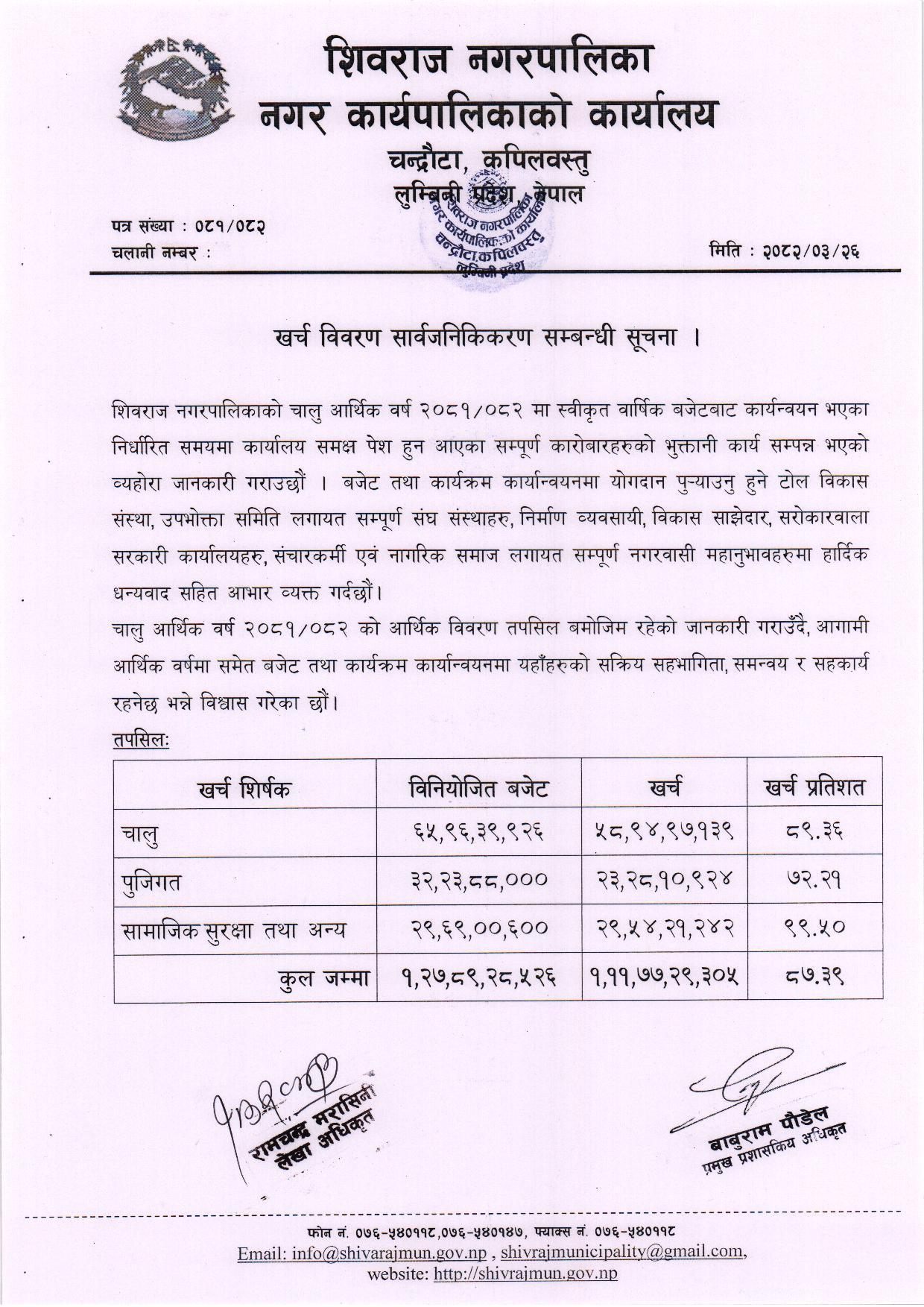 शिवराज न पा काे चालु खर्चकाे फाटवारी