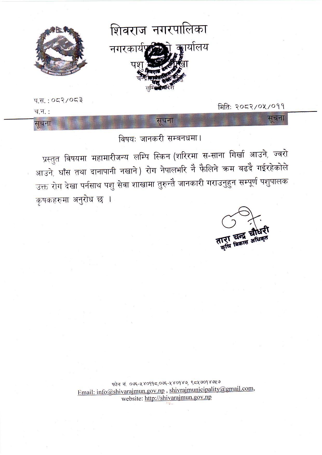 शिवराज नगरपालिका कृषि विकास शाखाकाे सूचना ! सूचना !! सूचना !!!