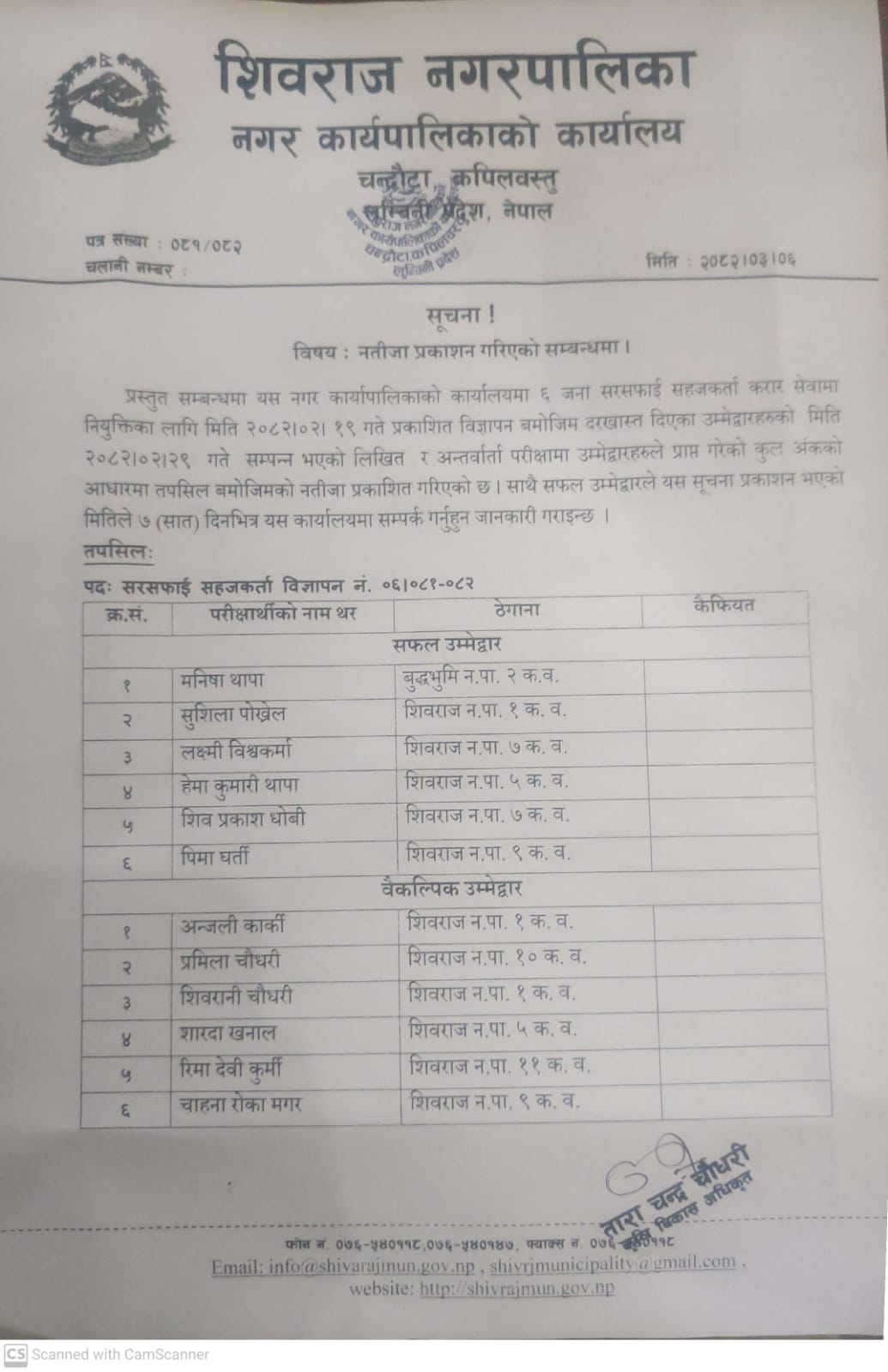 शिवराज नगरपालिकामा निर्वाचित जनप्रतिनिधिहरुको नामावलि विवरण ।