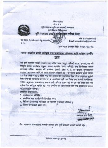 *व्यवसायिक कृषि तालिमको लागि निवेदन पेश गर्ने सम्बन्धी सूचना ।*