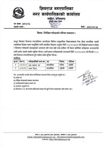 » लिखित परिक्षाको नतिजा प्रकाशन।