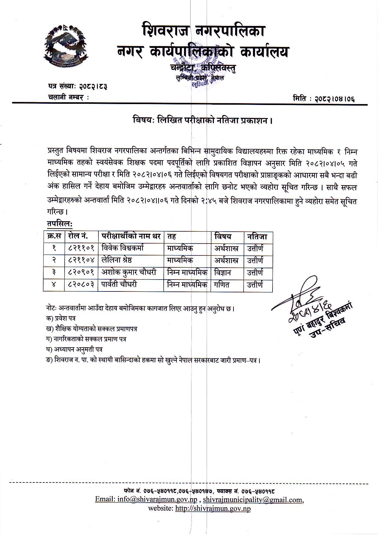 लिखित परिक्षाको नतिजा प्रकाशन।