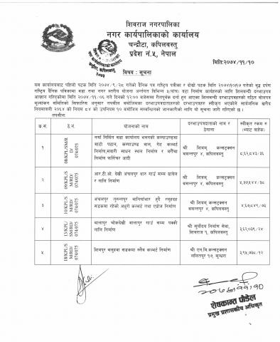 वडा तथा नगर स्तरिय योजना अन्तरगत स्वीकृत भएका दरभाउपत्र दाताहरु सम्बन्धी सुचना ।