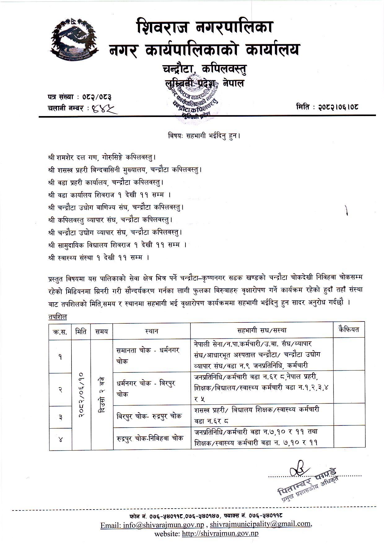 Shivraj Municipality, Chandrauta, Kapilvastu