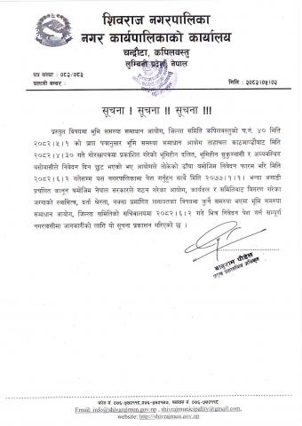 शिवराज नगरपालिकाको कार्यालयबाट नगरको सडक क्षेत्र व्यवस्थित गर्ने सम्बन्धि सूचना