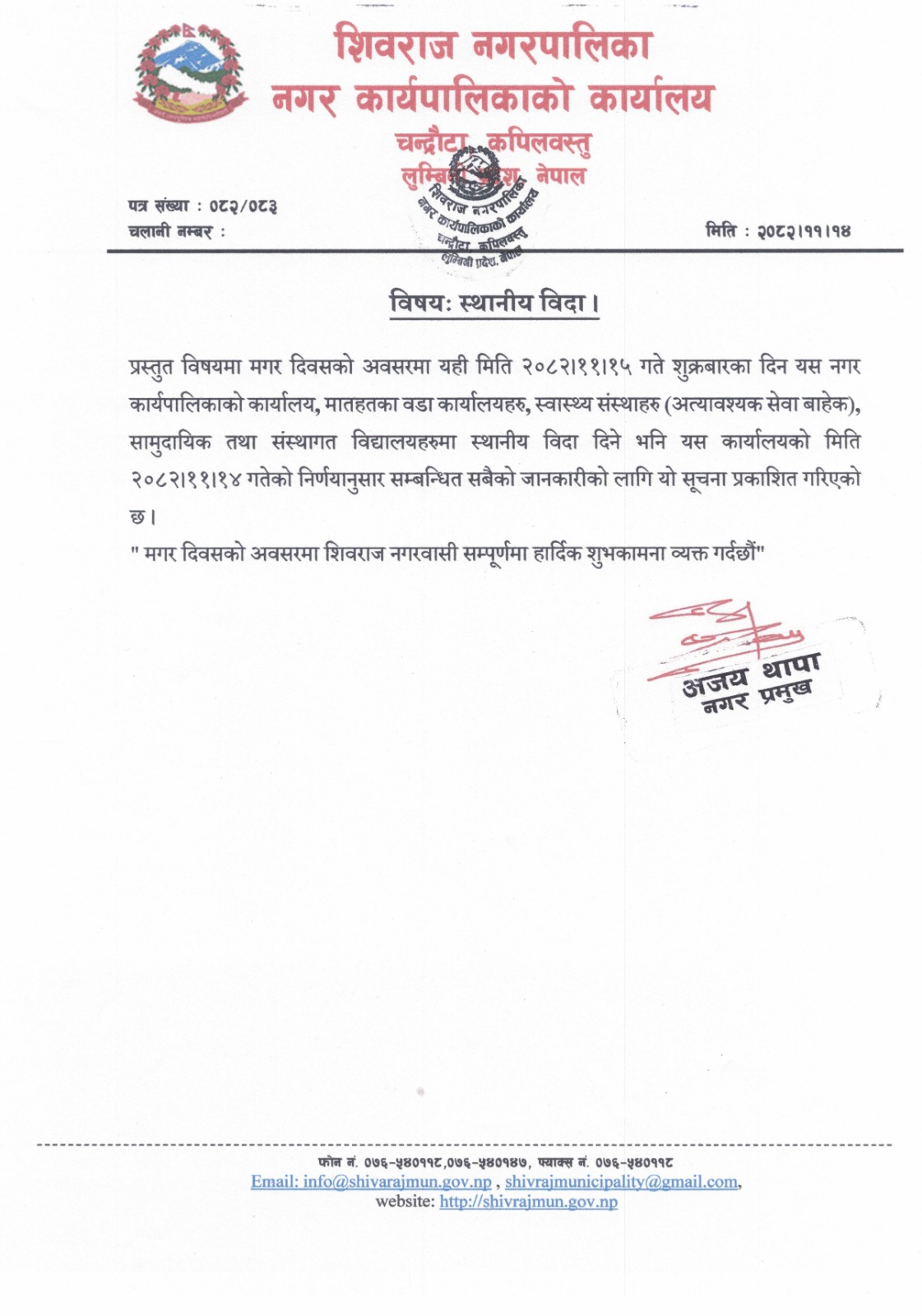 Shivraj Municipality, Chandrauta, Kapilvastu