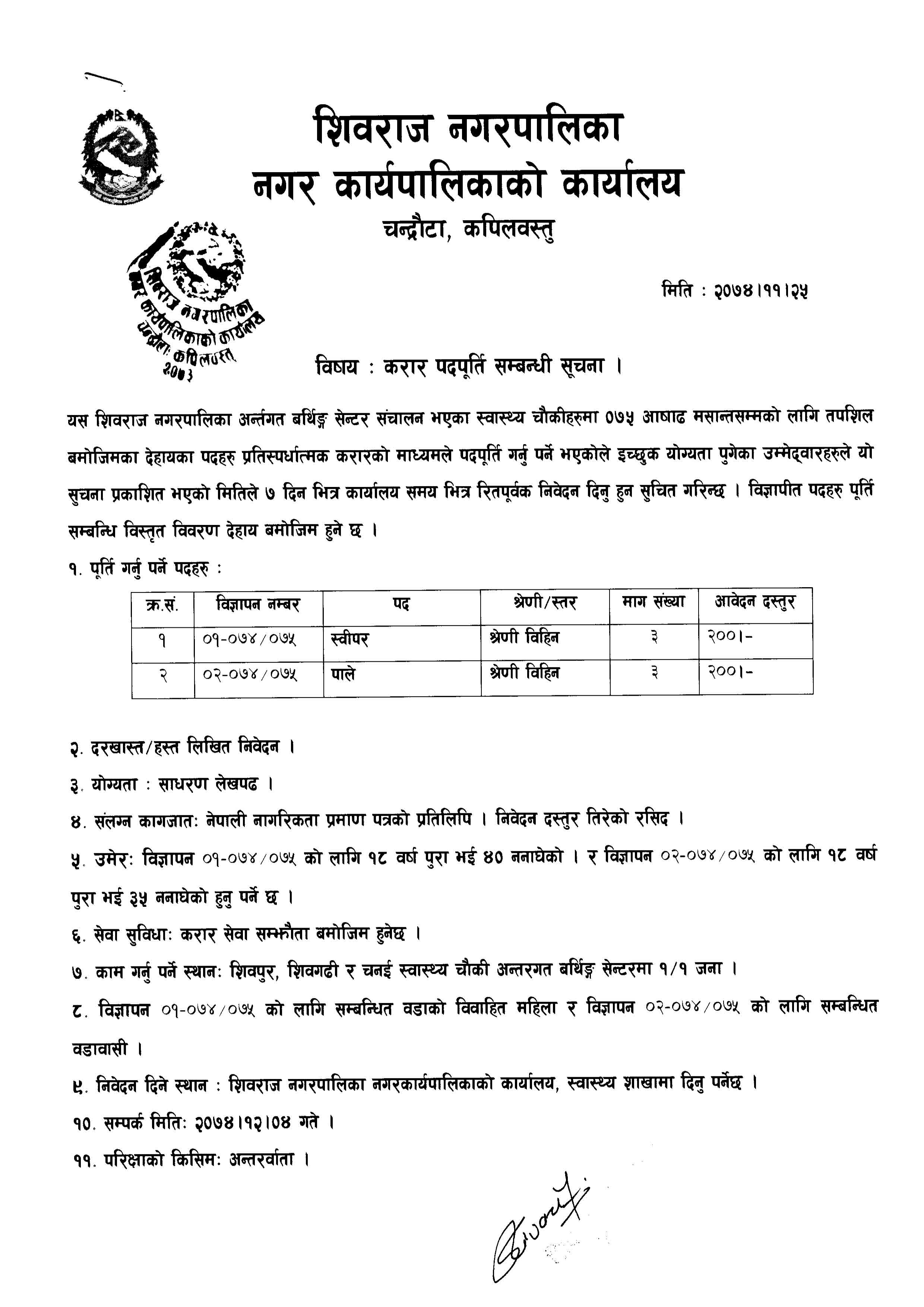 शिवराज नगरपािलकाले निम्न बमाेजिम स्वयंसेवक शिक्षकको बिज्ञापन प्रकाशन गरेकाे छ ।