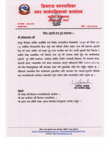 आन्तरिक आय संकलन सम्बन्धी शिलवन्दी दरभाउ पत्र आव्हानको सुचना