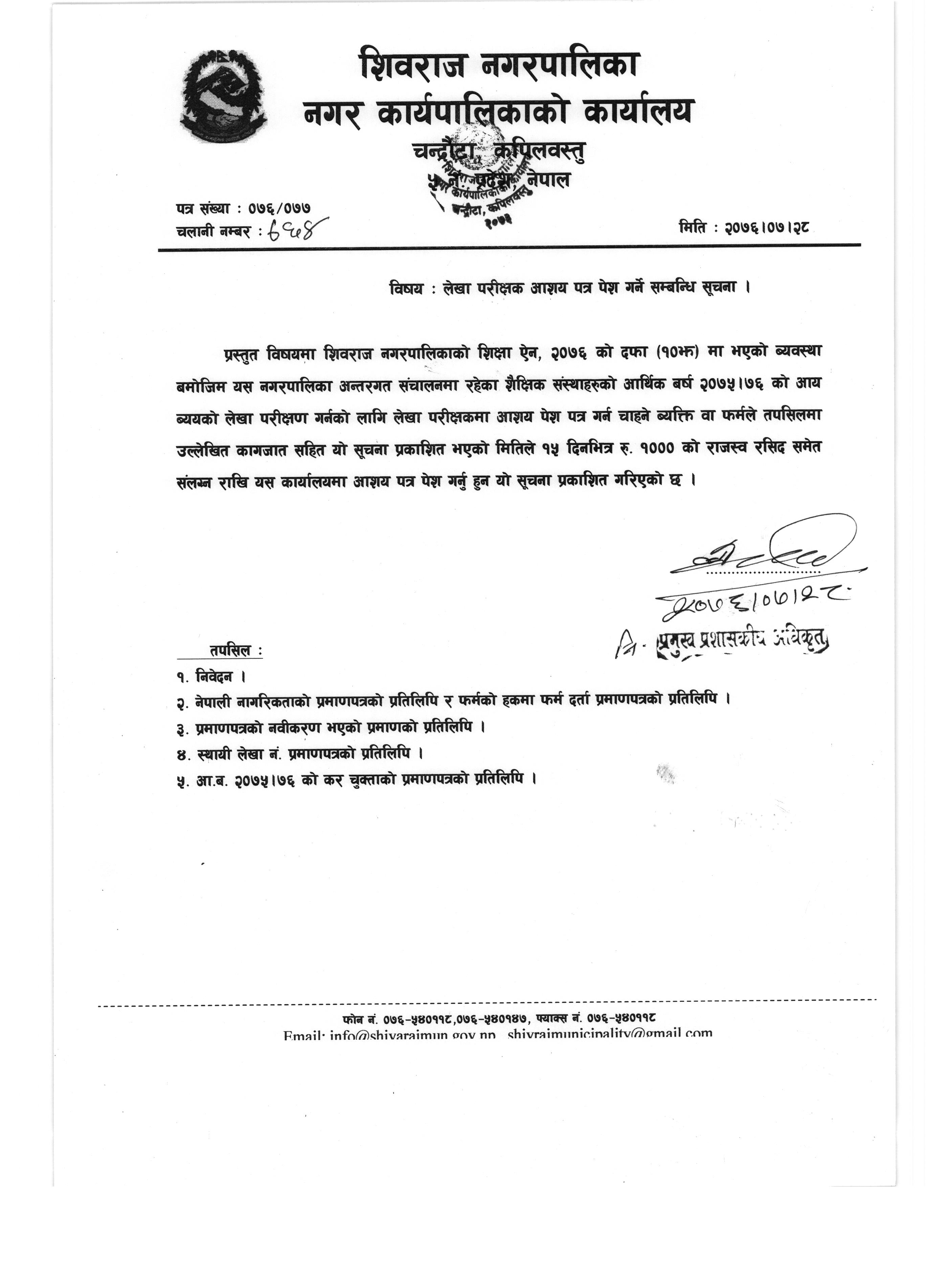 » लेखा परीक्षक आशय पत्र पेश गर्ने सम्बन्धि सुचना ।