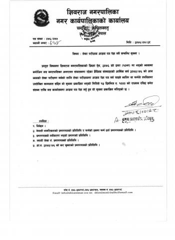 सरसफार्इ शुल्क संकलन र सरसफार्इ कार्य गर्ने सम्बन्धी शिलबन्दी दरभाउ पत्र आव्हानको सूचना