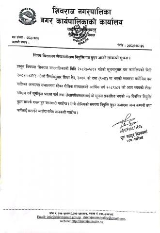 विद्यालय लेखापरीक्षण नियुक्ति पत्र बुझ्न आउने सम्बन्धी सूचना।