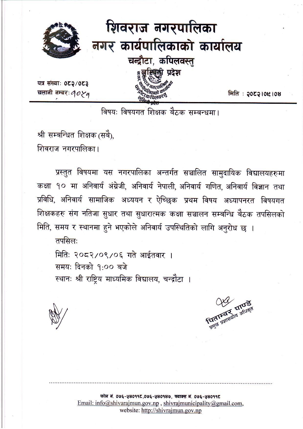 » विषयगत शिक्षक बैठक सम्बन्धमा।