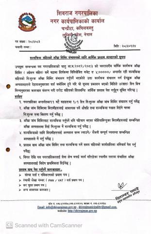 चन्द्रौटा बजार सरसफाई गर्ने कार्य तथा सरसफाई शुल्क संकलन सम्बन्धि शिलवन्दी दरभाउ सम्बन्धि सूचना ।