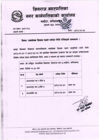 स्वयसेवक शिक्षक पदकाे परीक्षा मिति संशाेधन सम्बन्धि सूचना ।